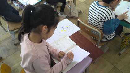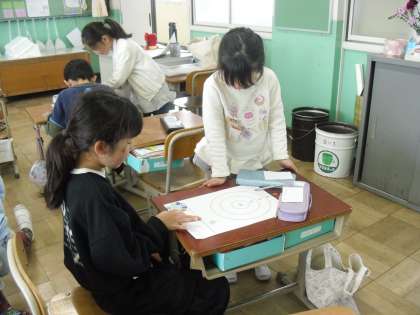 その後に、おはじきゲームを楽しみ、10や0のかけ算の求め方を使って、得点計算をすることができました。