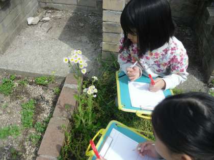 ダンゴムシの節や模様、花弁の細かな線など、気付いたことを丁寧にカードにまとめることができました。