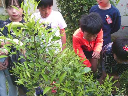 3年生の理科「チョウを育てよう」の学習では、モンシロチョウがキャベツ畑で何をしているかを予想し、観察しました。今回は残念ながらいませんでしたが、みかんの木にアゲハチョウの卵と幼虫を見つけることができました。