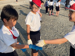 海で遊んだり、生き物に触れたりしました。
