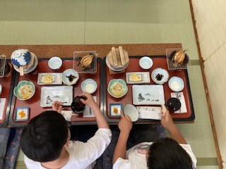 修学旅行2日目の朝を迎えました。朝食をいただき、今日も元気に活動したいと思います。