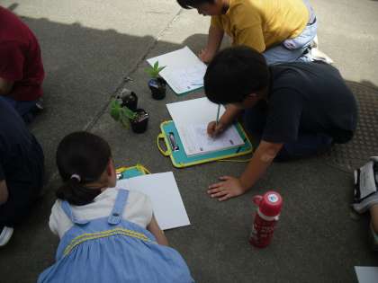 理科「植物の育ちとつくり」では、ホウセンカとヒマワリがどのように育っているか、観察しました。