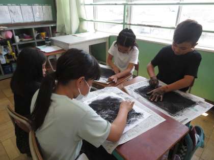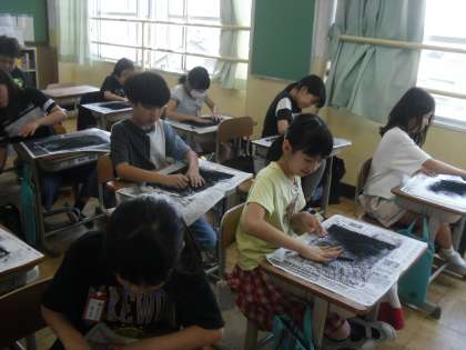 子どもたちは手を真っ黒にしながらとても楽しそうに夢中で塗り込んでいました。
