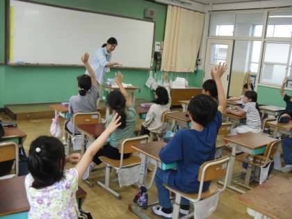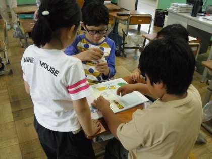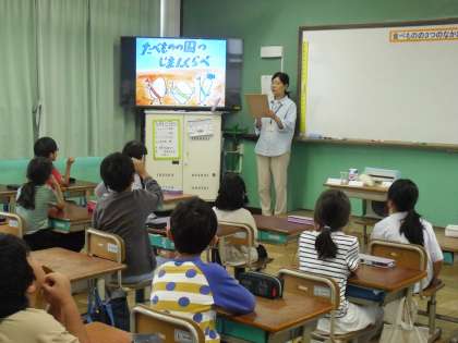 1組は、栄養教諭の吉田先生と一緒に、「食べ物の3つのなかまを知ろう」の学習をしました。