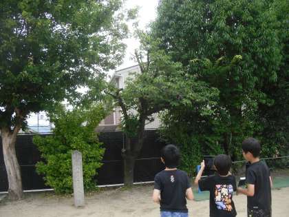 4年生は、「夏の生き物」のようすは春のころと比べてどうなっているのか、学校内を見つけに回りました。