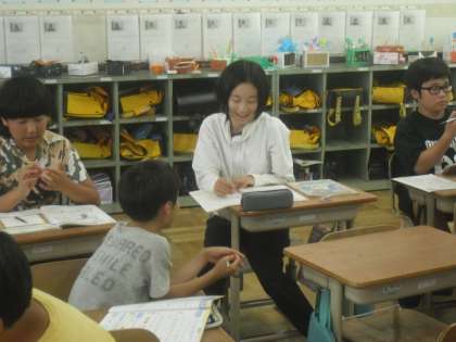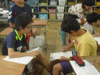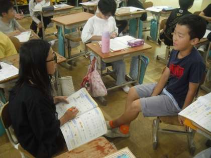 外国語「Unit2 My Daily Schedule」の学習では、週末の過ごし方について友だちと交流しました。友だちに何時に何をするのかを尋ねたり、答えたりしてやり取りすることができました。