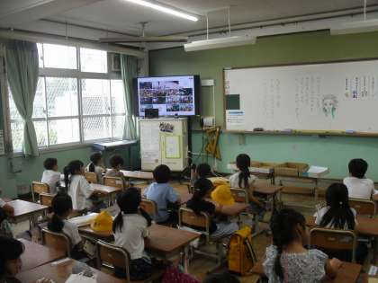 始業式は暑さ対策のためそれぞれの教室をオンラインでつないで行いました。子どもたちは夏休みの1か月で大きくなって教室にもどって来ました。また、本日から給食も始まり、給食当番ががんばって配膳の仕事をしました。まだまだ暑い日が続きますが、健康に気を付けながら楽しい2学期を過ごしていきたいと思います。今学期もどうぞよろしくお願いいたします。