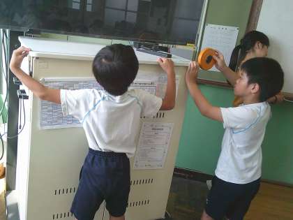 今まで長さを測るときは、15cmや30cm、1mのものさしを使っていましたが、「巻き尺」を使って、教室の縦や横など、いろんな場所の長さを測りました。