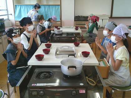 10月2日(木)に家庭科「食べて元気!ご飯とみそ汁」の調理実習をしました。
