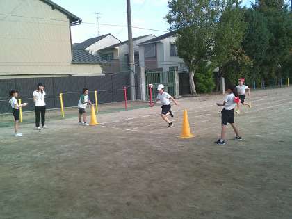 運動会に向けて100mトラックの線が引いてあったので、100m走のタイムを計りました。昨年度の記録と比べて、タイムが縮んだ子どもたちもいました。