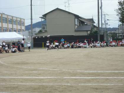 1年生の徒競走、50メートル走は、長い距離を力いっぱい走りました。