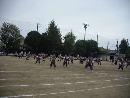 2年生の演技は沖縄の「エイサー」を踊りました。かっこいい衣装を着て元気に踊ることができました。