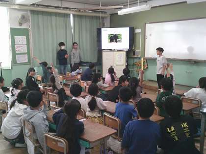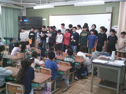 5時間目に1年生の教室に行き、お化け屋敷に招待したり、待ち時間に一緒にクイズやゲームをしました。ちょうど1年生が動物園に行った後だったので、「動物シルエットクイズ」が1年生にとって楽しかったようです。お化け屋敷は楽しむ子もいれば、怖がる子もいましたが、6年生は出来栄えに満足していました。