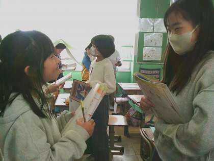 外国語ではレストランでのやりとりについて学んでいます。今日は店員とお客さんのやりとりを練習しました。子どもたちは「大きなおにぎりって伝えたいから“big ”っていれようかな。」、「辛いのが好きだから“spicy”を使ってみよう。」とこれまでに習った表現も取り入れて自分の注文したいものを伝えていました。次回は金額についてのやりとりを学びます。