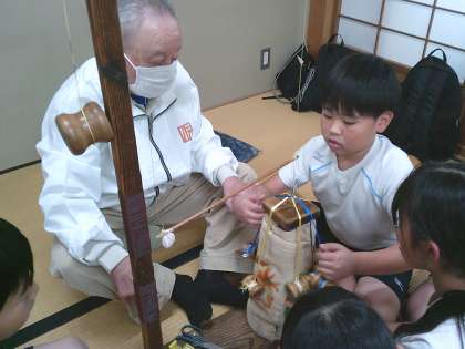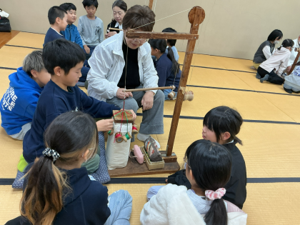 4年生は伝統工芸について学習をしています。今回は伝統工芸士の方にお越しいただき、京くみひもを作る体験を行いました。実際に作ってみることで、くみひもの繊細さや美しさ、技術のすごさに驚いていました。