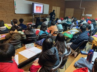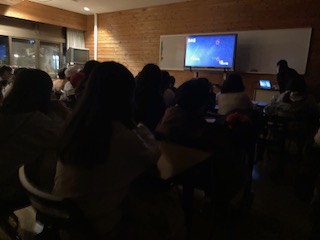 ナイトハイクを少し早めに終えて、本館にある研修室で、星の話や動物クイズなどをしました。