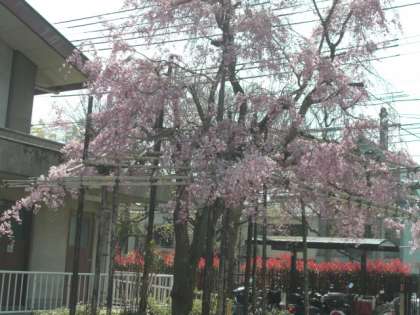 鳳徳小学校のシンボル的な木でもある「しだれ桜」が見事に咲きました。「区民の誇りの木」にも選ばれているほどの銘木です。濃いピンクの花色が全体に咲き、幹を覆うほどです。入学式の時はまだ6分咲きほどでしたが、記念写真のスポットになっていました。鳳徳校の教育もさらに大きく花開かせたいものです。