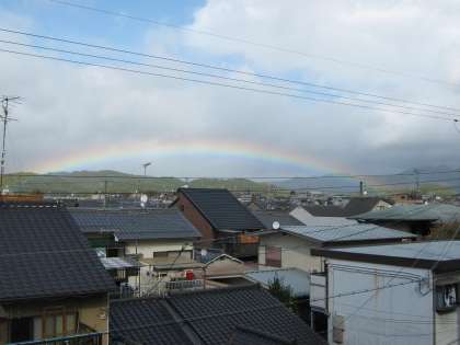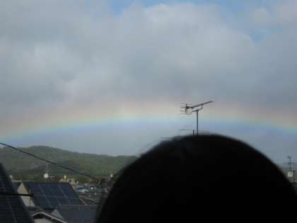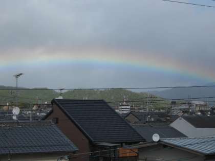 11月に急に冷え込みがきつくなりました。冷たい風も吹き,晴れていたと思ったら雨が降り,雨が降っていると思ったら晴れてきたり,と気まぐれの天気の中,虹を発見。3階の窓からきれいに見えました。思わず掃除する手をとめて眺めてしまいました。これから一段と寒くなっていくことだと思います。風邪には十分気をつけていきたいですね。