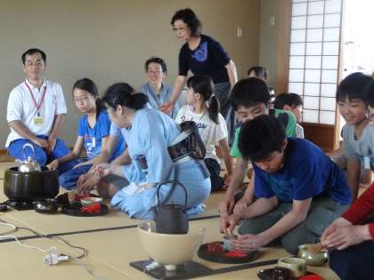 和室で茶道体験をしました。たくさんの方にお世話になり,ありがとうございます。