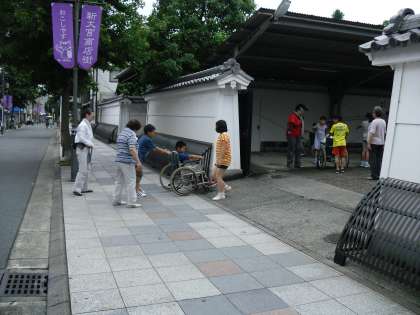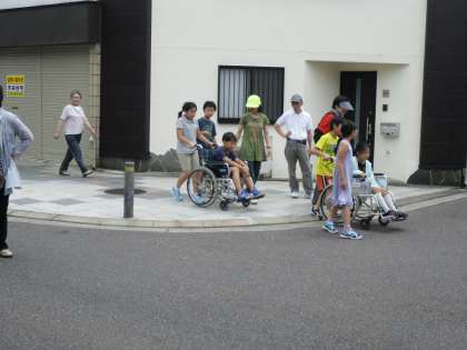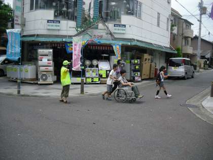 7月5日(金)新大宮商店街で、4年生が車いす体験を行いました。地域の社会福祉協議会・ボランティアサークル・交通安全協会・商店街の皆様が一緒に歩いてくださったり、交差点に立ってくださったり、温かく見守ってくださったりして安全に体験活動をすることができました。学校だけではできない貴重な体験です。子どもたちは「道に自転車が置いてあると通りにくかったので私たちも今度から気をつけよう」「段差があると難しいなあ」など、感じたことを出し合い、優しい街になるために自分たちが実践できることを考えました。