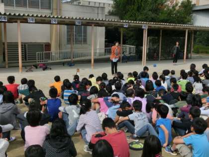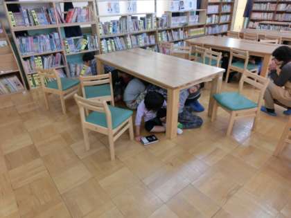 運動場,教室,図書室など,子どもたちはそれぞれの場所で中間休みを過ごしている時に避難の指示が出され,その場所に適した方法で身の安全を確保し,運動場まで全員が避難しました。