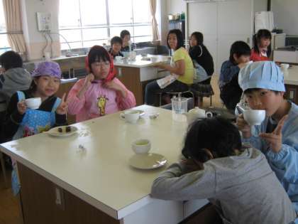 家庭科の時間にお茶をの入れ方を学習しました。ガスコンロなどの使い方を確認してお湯をわかしました。ほっこりとした時間を過ごしました。