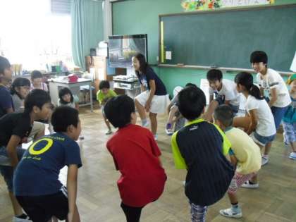 中間休みのたてわり遊びの様子です。月に1回行っています。6年生の人数と同じ数だけグループを作っているので,一人一人全員がリーダーになります。どの子も低学年に優しく接し,遊びをリードしてくれています。