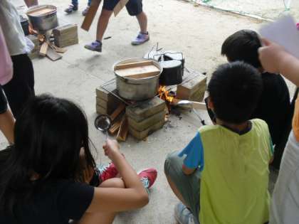 来週の山の家宿泊学習に向けて,只今飯ごうすいさん中です。山の家では野外炊事を2回経験します。今日は火のつけ方,ご飯の炊き方,野菜の切り方など,経験の少ない子どもたちも楽しく活動しながら学習しています。きっと苦労した分だけおいしいカレーになるでしょう。
