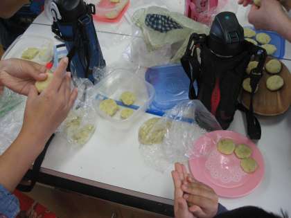 生活科で収穫したさつまいもをお焼きにしていただきました。保護者の方々に下ごしらえをしてもらったさつまいもを,子どもたちがつぶして丸め,平たいおだんごにしてホットプレートで焼きました。ほくほくとしてとてもおいしいおやつでした。「今までに食べたことのない味がした。」「また家でも作りたい。」など,笑顔で感想を話していました。