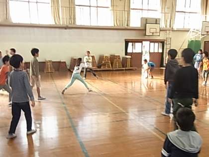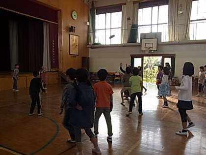 5校時に,体育館で親子親睦会を開きました。今年は,保護者チームと1組チーム,2組チームの3チームでドッジビーの対戦をしました。子どもたちは,夢中でドッジビーを追いかけて,汗をいっぱいかきました。