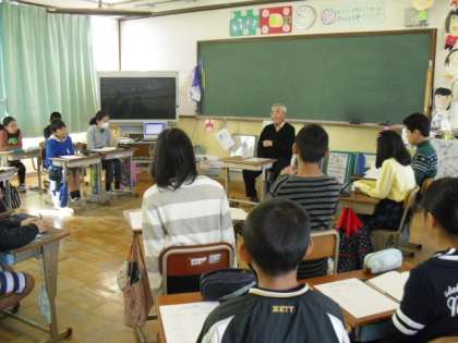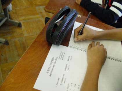 地域の方に戦時中のお話を聞かせていただきました。戦争のころ小学生だったということで子どもたちも自分自身と重ねながら熱心に聞いていました。学校生活の様子,遊びの様子をお話ししていただきました。そのころの姿や鳳徳小学校の様子が目にうかぶようでした。激動の時代を実際に経験された方からのメッセージは心にしみるものでした。