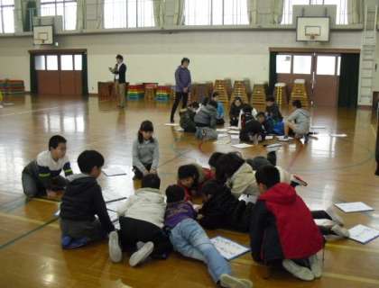 3年生はことわざの学習をしているので,「ことわざカルタ」に挑戦しました。読み手が「ことわざの意味」を読んで,ことわざの取り札を取ることにも挑戦しました。ジャンボカルタなので,札が見やすく,楽しい活動となりました。子どもたちから,「もっとしたい。」との声が出ていました。学習を進めてから,学級でも挑戦したいと思います。