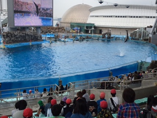 水族館に到着です。いろいろな珍しい魚を見て,お楽しみの「イルカショー」を見学しました。 この後は,朝早くから作っていただいたお弁当を食べて,お買い物タイムです。