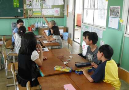 2校時にたてわりグループで,それぞれの教室に集まり,第1回のたてわり集会を行いました。年間の活動やたてわり掃除の場所を確かめたあと,グループのめあてを決めました。その後,たてわり遊びの内容を考えたり,写真撮影をしたりしました。どのグループも5・6年生のリーダーが準備をして,しっかり話し合いをすすめてくれていました。1年間なかよく活動してくれることでしょう。