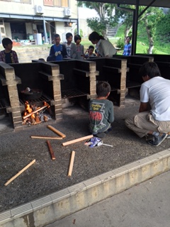 午後からは,学校でも練習をしていった「カレー作り」です。学校では家庭科室のガスコンロでしたが,みさきの家では,かまどで薪を燃やします。暑さに負けず頑張る子どもたちです。