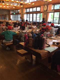 2日目がスタートしました。子どもたちは6時に起床し,朝の集いを行いました。そのあとは,広い食堂での初めての食事です。食事はバイキング形式で一人ひとりが量や栄養を考え自分の皿に盛りつけます。これも山の家の楽しみの一つです。