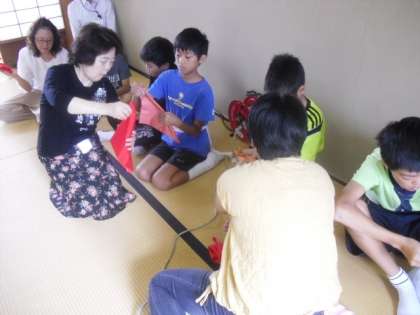 3・4校時に,6年生が日本の伝統である茶道について学ぶ「茶道教室」がありました。前回に教えてもらった礼儀作法を思い出しながら,子どもたちは部屋の中を進み,お茶をたてたりお茶菓子をいただいたりしました。今回は「袱紗」について新たに教えてもらい,子どもたちは一生懸命に袱紗を折っていました。最後に,「お茶をよばれる」礼儀についてもお話しいただきました。ご指導いただきました女性会の皆様,ボランティアでお越しいただいた保護者の皆様,ありがとうございました。来週もどうぞよろしくお願いいたします。