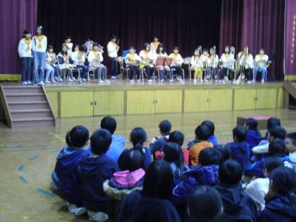 本日の昼休みに金管ミニコンサートがありました。この日は,いつも昼休みを延長して,全校児童が揃って金管の演奏を聴きます。金管バンドのメンバーも今年度最後のステージを楽しみにしながら練習を重ねてきました。曲の合間には楽器紹介を交え,金管バンドの良さをアピールしていました。最後にはアンコールもあり,手拍子で会場が一つになり,楽しい時間となりました。