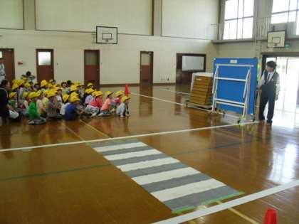 本日5校時は,北警察の池田さんにお越しいただき,1年生を対象とした交通安全教室を行いました。交通安全協会からも3名の方に来ていただき,お手伝いやお話をしていただきました。色々な場面を想定した道路を設置し,一人ずつ車に気を付けて歩いたり,横断歩道を渡ったりしました。今回経験したことや教わったことを今日から実践して,安全な登下校ができるよう願っています。
