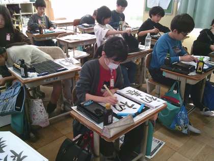 書写の時間に、一足早く書き初めをしました。今回は「初春」と書きました。これまでの学習を思い出しながら、へんとつくりのバランスやはらいの方向に気をつけて書くことができました。