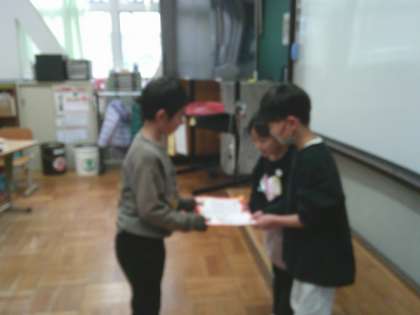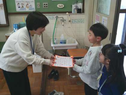 10日(水)に行う「あきのおもちゃであそぼうかい」の招待状を渡しに行きました。
