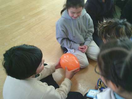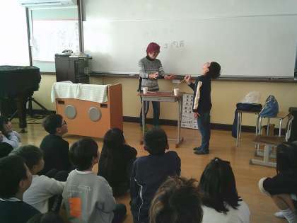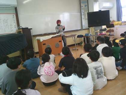 総合的な学習の時間では、耳の聞こえない方からお話を伺いました。普段の生活の様子や困っていることを教えていただいた後に発音訓練の様子や簡単な手話を教えていただきました。普段の生活では振動や光を工夫して活用していること、自分たちが普段から使うジェスチャーと似ている手話があることを知り、驚いていました。