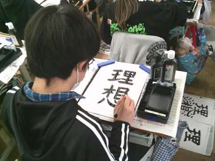 少し早いですが、書き初め展の出品を控えており、書き初めをしました。6年生は「理想」と書きました。これまでの学習を生かして、丁寧に取り組んでいました。