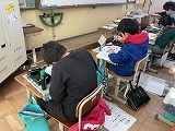 今回は普段と違い小筆を使って書きました。止め、はね、はらいや文字のバランスなどいつもの筆の使い方とは違い、「難しい!」と苦戦する様子も見られましたが、最後まで集中して書くことができました。