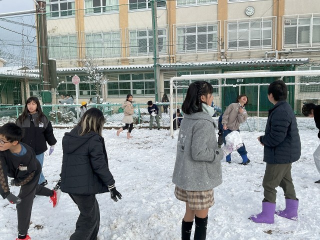 昨日から降り続いた雪で朝から校庭は真っ白でした。今日は予定を変更して1時間目に雪遊びをしました。雪だるまを作ったり、雪合戦をしたりと雪が積もることが珍しいので子どもたちはとてもうれしそうでした。まだまだ寒い日が続きますが、体を動かして体力をつけ、元気に過ごしてほしいと思います。