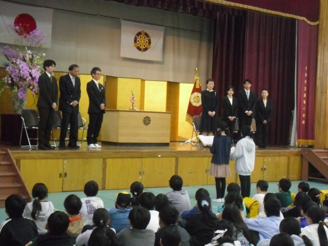 着任式では、6年生の子どもたちが全校を代表して、新着任者に鳳徳小学校のよいところを伝えてくれました。