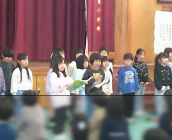 鳳徳小学校を代表して、2年生のみんなが鳳徳小学校の素敵なところや1年生の間にできるようになったことを発表しました。
