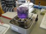 ムラサキキャベツ液を作りました。 水溶液を区別しました。 酸性は赤色、アルカリ...