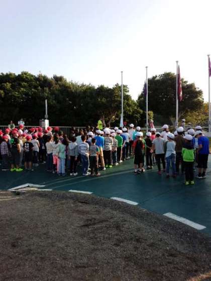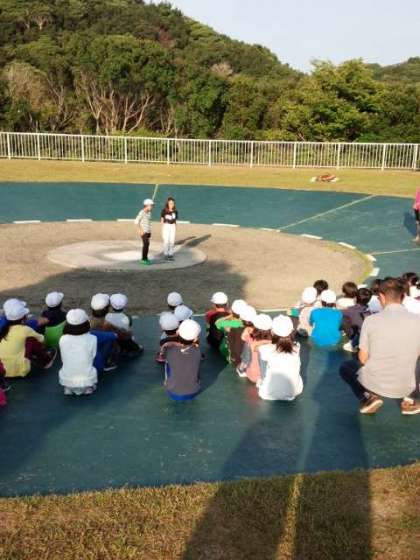 7時から、元町小、紫竹小、紫明小、右京区の広沢小の4校で合同朝のつどいを行いました。学校紹介では、他校の特色がよくわかりました。