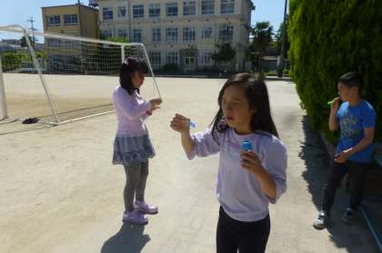 まずは,シャボン玉のことをよく知るためにシャボン玉で遊びました。